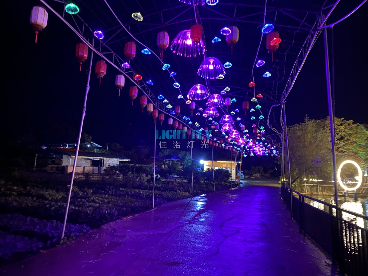 夜晚燈光秀也成為山莊設(shè)計的一大特色,奇湖山莊領(lǐng)導(dǎo)一致采用了山體投影激光燈秀與LED景觀燈作為夜晚燈光秀,動畫激光燈實現(xiàn)了文字與動畫在山體上的結(jié)合,讓每一位游客在飯后休閑欣賞一場多姿多姿的激光燈秀,現(xiàn)有的三個山塘一個水庫,種荷養(yǎng)魚,利用現(xiàn)有的百畝龍眼園,千畝荔枝園作閃光點,專門開辟了觀光、采摘的路線,使游客留連忘返,樂趣無限。開張前后,平南電視臺、龔州網(wǎng)、商域等媒體作了大量的宣傳報道,周邊老幼皆知,前來的游客魚貫不絕,獨特的環(huán)境,熱誠的服務(wù)給游客留下了深刻的印象。廣州佳諾燈光設(shè)備有限公司是一家十五年從事智能化演藝燈光研發(fā)、生產(chǎn)、銷售、服務(wù)于一體的國家高新技術(shù)企業(yè)。其自主品牌【佳諾燈光LIGHT FLY】產(chǎn)品涵蓋專業(yè)舞臺燈光、LED演藝照明,文旅亮化等領(lǐng)域,廣泛應(yīng)用于劇院、體育場館、電視臺及各種演出場所。