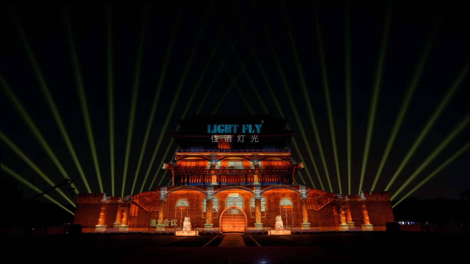 為了吸引全國各地客戶來商丘旅游,佳諾燈光LIHGT FLY設(shè)計部為商丘古鎮(zhèn)設(shè)計了最新震撼的古鎮(zhèn)燈光秀,古鎮(zhèn)外圍設(shè)計了100臺44X10W防水LED投光燈給古鎮(zhèn)墻體外圍鋪光染色效果,60臺防水480W光束燈放在墻上上面,實現(xiàn)夢幻光束七彩效果,在配備了四臺60W全彩防水動畫激光燈實現(xiàn)地標(biāo)激光效果,吸引五公里范圍的游客眼光,通過BEYOND雕刻軟件與投影實現(xiàn)古鎮(zhèn)雕刻與投影激光效果,得到了游客紛紛留念拍照。