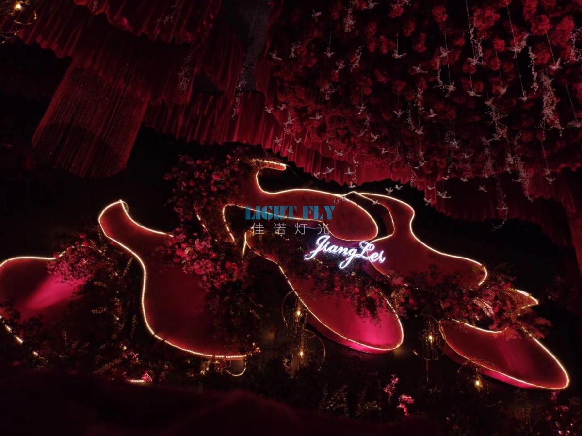 婚禮上可以使用大量的彩燈來裝扮,這些大量的彩燈可以營造出浪漫、驚艷的效果。
