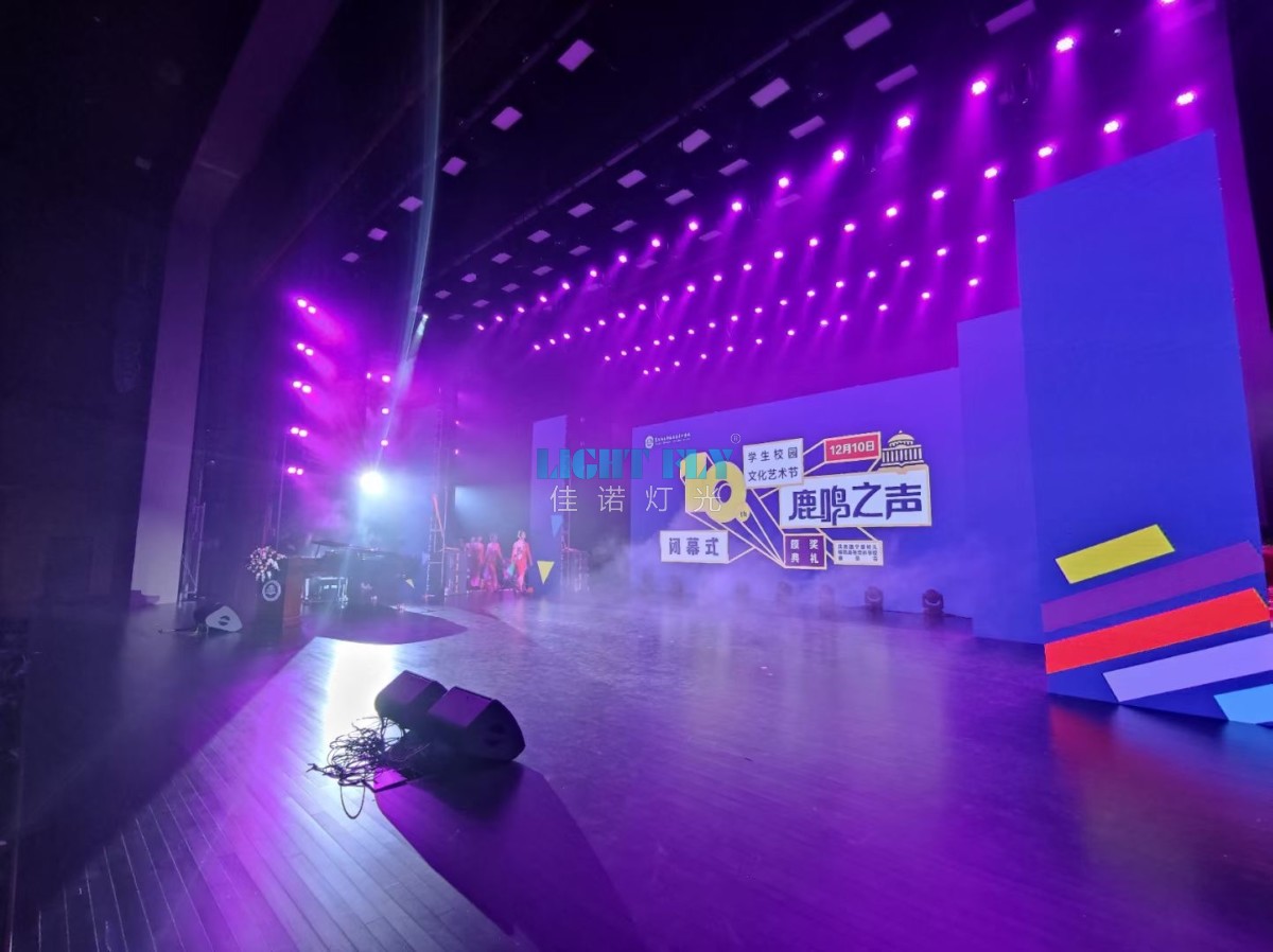 整個(gè)劇院燈光全部采用節(jié)能智能化燈光系統(tǒng):主要68臺(tái)FLY-380B 380W光束燈,120臺(tái)FLY-1810L 18顆10W四合一LED染色帕燈,16臺(tái)FLY-440BSW 440W光束圖案燈,F(xiàn)LY-256T 32臺(tái)三基色LED柔光燈,F(xiàn)LY-2048C 八路觸摸老虎控臺(tái)等燈光控制臺(tái)設(shè)備,廣州佳諾燈光設(shè)備有限公司是一家十二年從事智能化演藝燈光研發(fā)、生產(chǎn)、銷(xiāo)售、服務(wù)于一體的國(guó)家高新技術(shù)企業(yè)。其自主品牌【佳諾燈光LIGHT FLY】產(chǎn)品涵蓋專(zhuān)業(yè)舞臺(tái)燈光、LED演藝照明,文旅亮化等領(lǐng)域,廣泛應(yīng)用于劇院、體育場(chǎng)館、電視臺(tái)及各種演出場(chǎng)所。