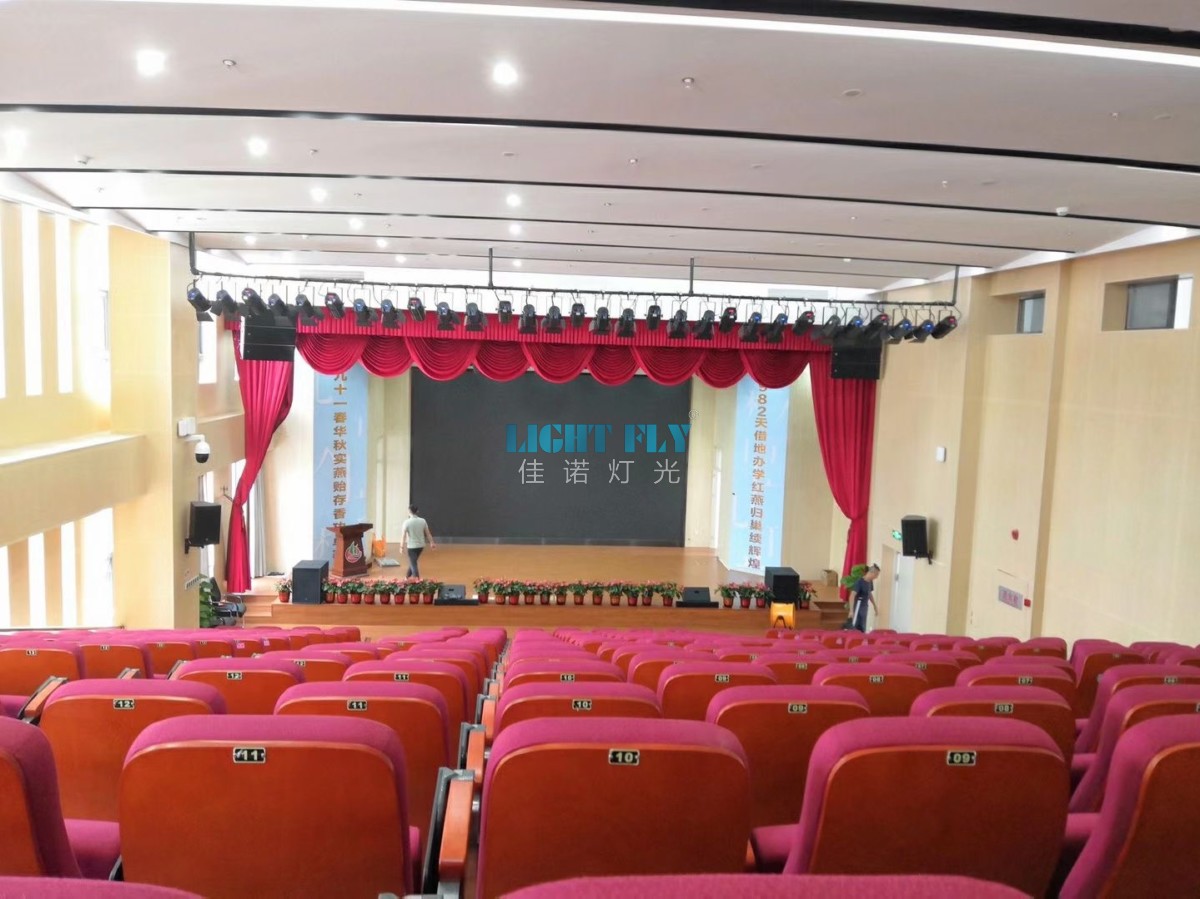 2020年東莞中心小學多功能會議室燈光進行升級改造,佳諾燈光LIGHT FLY按照最新的燈光系統(tǒng)方案,提供了設計,安裝,調(diào)試一體化服務。主要采用最新的26臺FLY-500T 200W調(diào)焦LED影視聚光燈,68臺FLY-1810L 18顆10W四合一LED染色燈,16臺FLY-380BSW 380W光束圖案燈,24臺FLY-380B 青龍款380W光束燈,一臺八路觸摸老虎控臺等燈光控制臺設備,高亮度的會議廳效果得到校領導的一致好評,廣州佳諾燈光設備有限公司是一家十二年從事智能化演藝燈光研發(fā)、生產(chǎn)、銷售、服務于一體的國家高新技術企業(yè)。其自主品牌【佳諾燈光LIGHT FLY】產(chǎn)品涵蓋專業(yè)舞臺燈光、LED演藝照明,文旅亮化等領域,廣泛應用于劇院、體育場館、電視臺及各種演出場所。