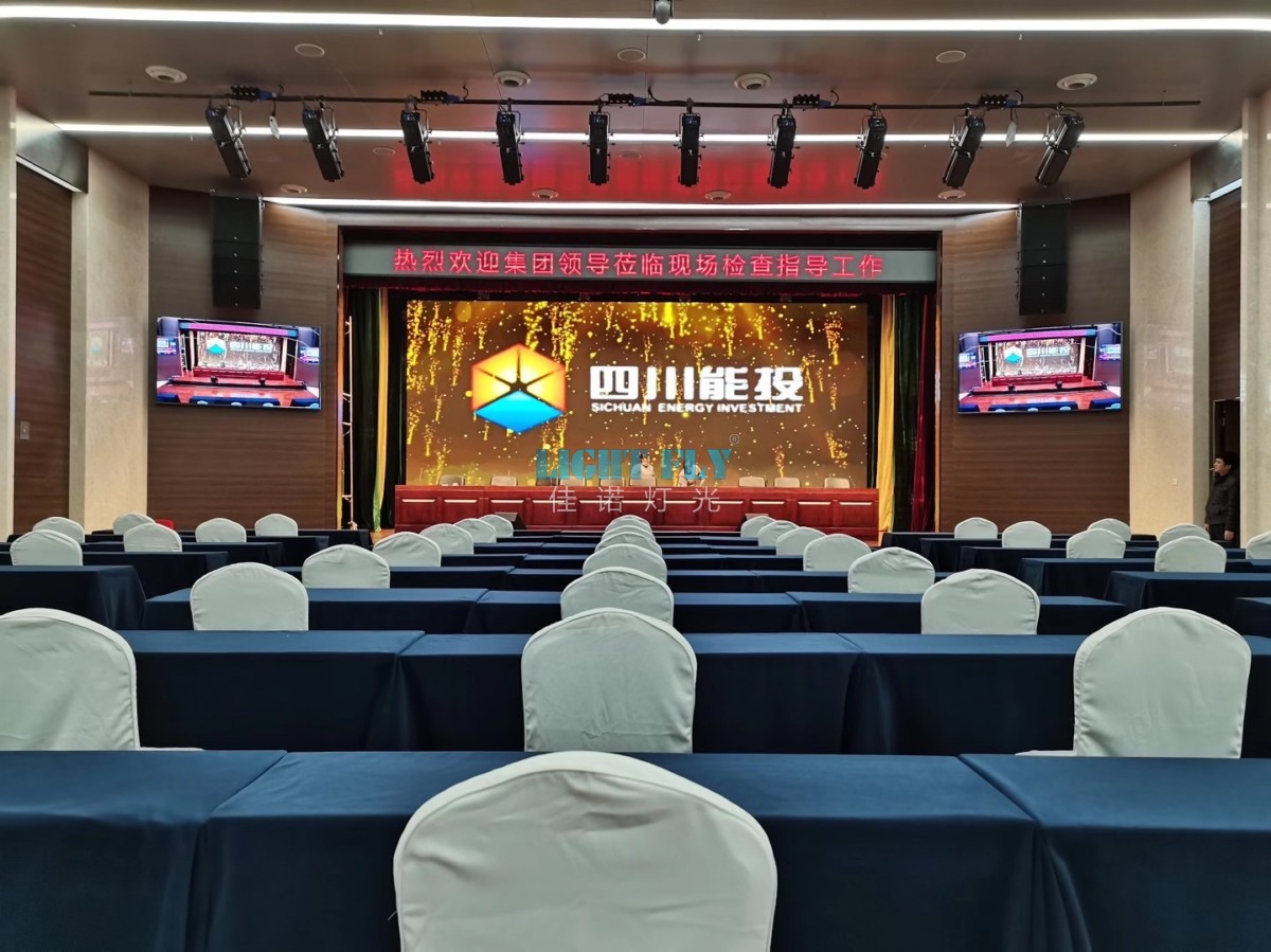 牢固樹立“根”“魂”意識,以高質(zhì)量黨建凝聚起集團改革發(fā)展的強大合力堅持用黨建文化引領(lǐng)企業(yè)文化建設(shè),提煉塑造具有鮮明能投基因的能投文化。四川能投作為四川省最重要的國有骨干和領(lǐng)軍企業(yè)之一,正奮力成長為西部一流、國內(nèi)領(lǐng)先的能源化工綜合性企業(yè)集團,為推動治蜀興川再上新臺階貢獻能投智慧和能投力量!佳諾燈光LIGHT FLY為多功能會議室燈光設(shè)計了300W影視LED成像燈,高亮度與高顯指保證了會議的攝像與面光效果,得到領(lǐng)導(dǎo)們的一致滿意,廣州佳諾燈光設(shè)備有限公司是一家十二年從事智能化演藝燈光研發(fā)、生產(chǎn)、銷售、服務(wù)于一體的國家高新技術(shù)企業(yè)。其自主品牌【佳諾燈光LIGHT FLY】產(chǎn)品涵蓋專業(yè)舞臺燈光、LED演藝照明,文旅亮化等領(lǐng)域,廣泛應(yīng)用于劇院、體育場館、電視臺及各種演出場所。