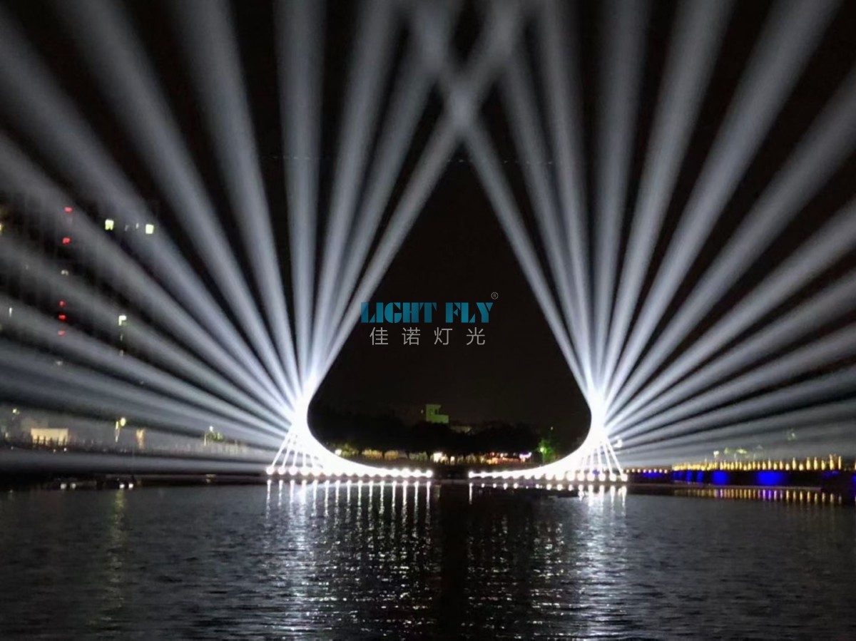 佳諾燈光LIGHT FLY在酒店人工湖中設(shè)計(jì)了32臺(tái)380W防水光束燈,采用兩邊各放置16臺(tái)通過老虎控制臺(tái)打造美輪美奐的光束效果,讓每位來旅游的有客戶在夜晚感受一份震撼的燈光盛宴,酒店還配備了2臺(tái)60W全彩地標(biāo)激光燈打造極光秀,絢麗的激光燈效果得到了游客們的熱情拍照與留念,廣州佳諾燈光設(shè)備有限公司是一家十二年從事智能化演藝燈光研發(fā)、生產(chǎn)、銷售、服務(wù)于一體的國家高新技術(shù)企業(yè)。其自主品牌【佳諾燈光LIGHT FLY】產(chǎn)品涵蓋專業(yè)舞臺(tái)燈光、LED演藝照明,文旅亮化等領(lǐng)域,廣泛應(yīng)用于劇院、體育場館、電視臺(tái)及各種演出場所。
