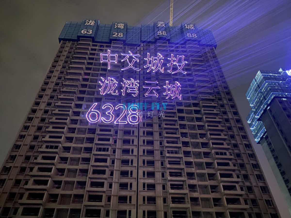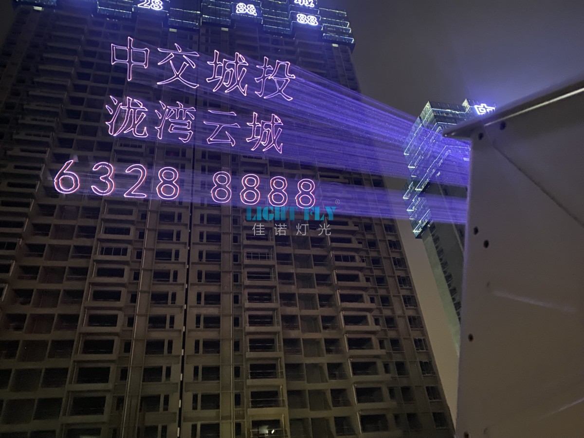 廣告地標(biāo)激光燈成為房地產(chǎn)廣告夜晚最佳宣傳方式,實(shí)現(xiàn)了文字與動(dòng)畫的絢麗結(jié)合,高亮度與多姿多彩的動(dòng)畫效果,點(diǎn)亮夜晚,讓樓盤成為周圍最亮眼的明星,及宣傳了公司也讓售樓部的樓盤得到了宣傳,中交城投龍灣云城項(xiàng)目由佳諾燈光LIGHT FLY設(shè)計(jì)了廣告地標(biāo)激光燈,在樓盤正中央設(shè)計(jì)了三臺(tái)防水廣告激光燈,每臺(tái)對(duì)應(yīng)了相應(yīng)的文字與廣告效果,讓周邊的客戶與來往的車輛一眼就了解了這個(gè)樓盤的優(yōu)點(diǎn),實(shí)現(xiàn)了廣告與銷售雙結(jié)合,也得到了領(lǐng)導(dǎo)的一致滿意。