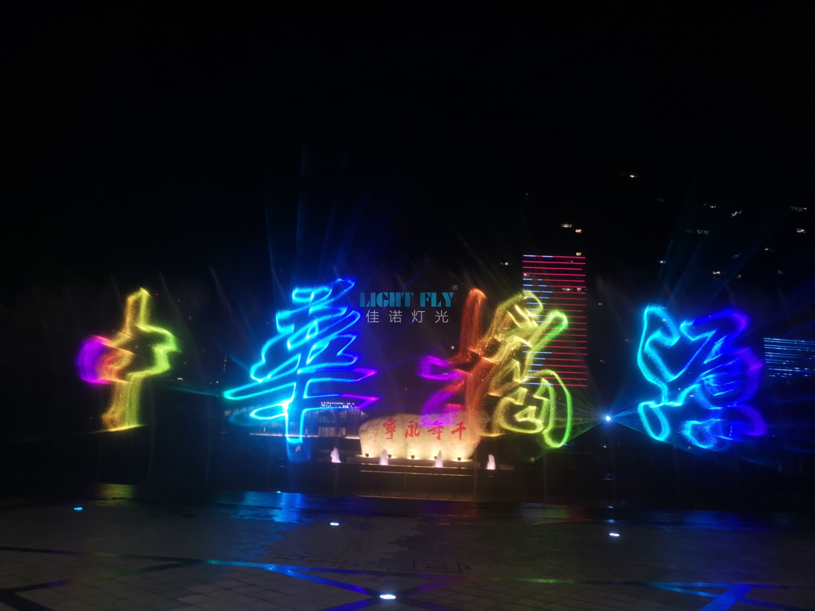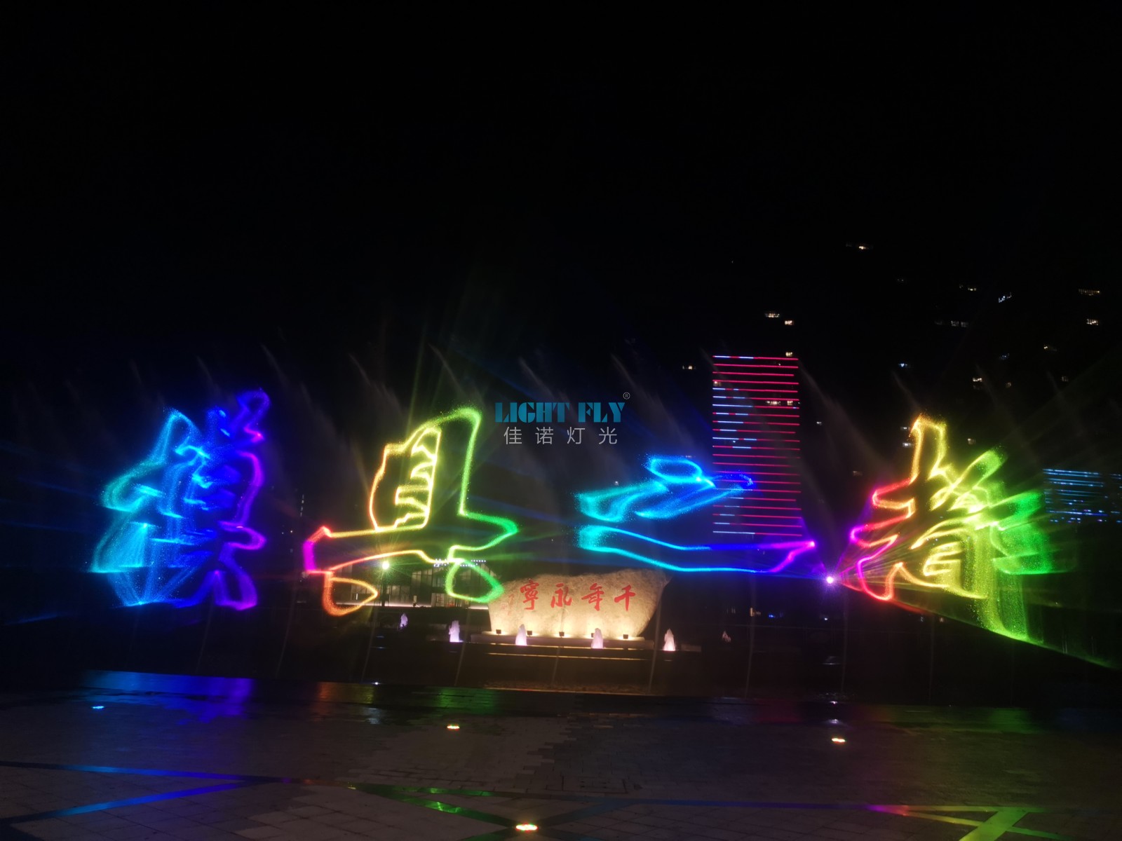 永寧公園位于風(fēng)景秀麗的永寧江畔,公園以水景噴泉、觀賞花木、人文雕塑為特色,水景區(qū)由音樂噴泉、旱噴組成,利用計(jì)算機(jī)控制,使聲、光、色同步變化,氣勢(shì)恢宏。佳諾燈光LIGHT FLY技術(shù)通過FB4激光軟件實(shí)現(xiàn)了文字與動(dòng)畫激光效果,配合水幕噴泉營(yíng)造夜晚3D投影激光秀,七彩絢麗的激光秀吸引了各地游客,讓大家了解永寧,了解模具之都。公園里面可以觀賞花木區(qū)內(nèi)有石榴園、桂花園、梅園及地方特色觀賞花木。人文雕塑區(qū)由桔都風(fēng)情等各具特色的雕塑組成。廣州佳諾燈光設(shè)備有限公司是一家十五年從事智能化演藝燈光研發(fā)、生產(chǎn)、銷售、服務(wù)于一體的國家高新技術(shù)企業(yè)。其自主品牌【佳諾燈光LIGHT FLY】產(chǎn)品涵蓋專業(yè)舞臺(tái)燈光、LED演藝照明,文旅亮化等領(lǐng)域,廣泛應(yīng)用于劇院、體育場(chǎng)館、電視臺(tái)及各種演出場(chǎng)所。